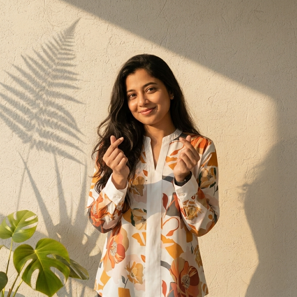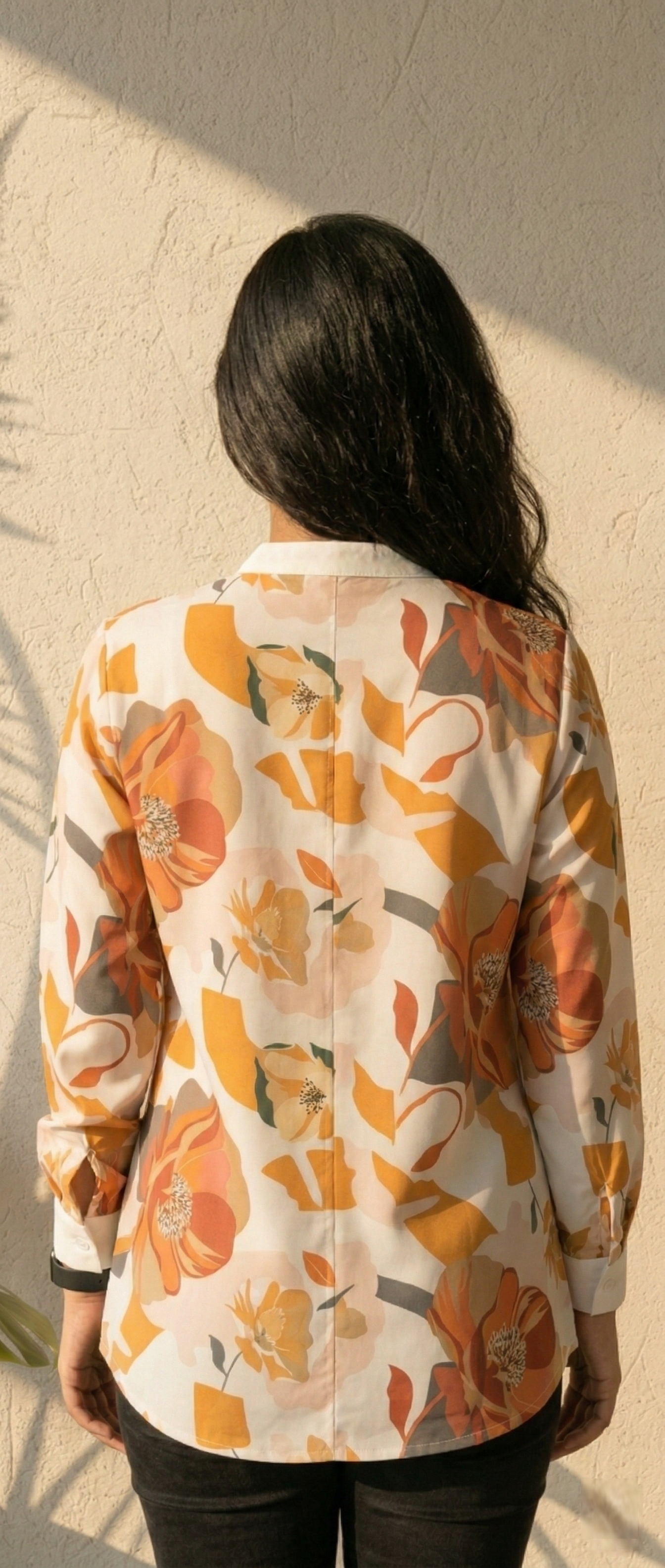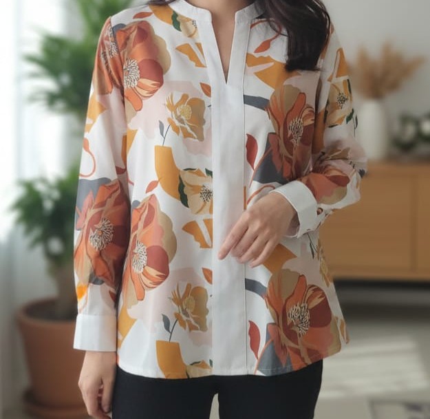 Soft crepe chiffon with breathable comfort, Korean-style shirt with delicate floral prints and a relaxed silhouette. Effortlessly chic, lightweight, and perfect for minimal yet elegant everyday looks.