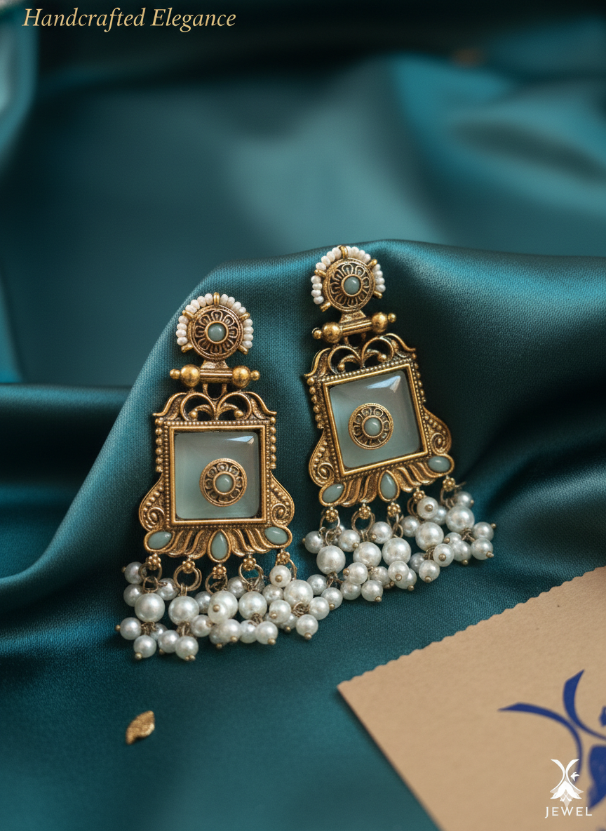 Inspired by royal heirlooms, these ornate earrings blend vintage charm with graceful movement for an elegant finish. An exquisite fusion of tradition and artistry, made to stand out at weddings, festivities, and special occasions.